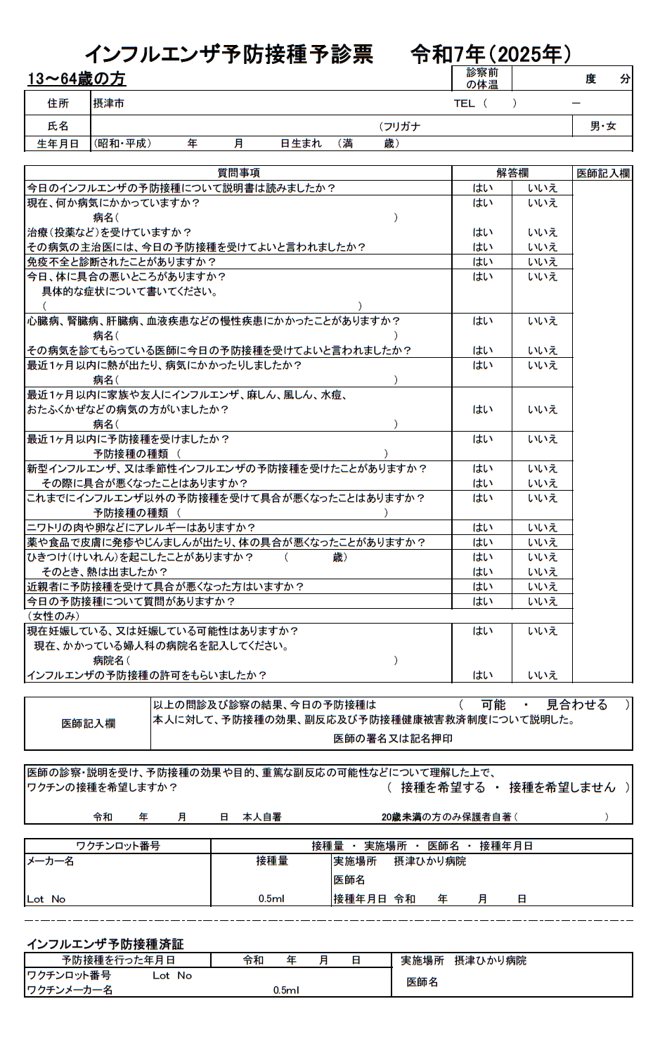 令和7年10月1日(水)より、インフルエンザワクチンの 予防接種受付を